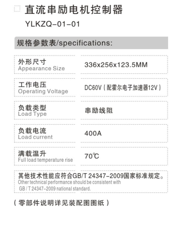 本直流串励电机控制器采用铝合金材料注拉而成,抗冲击力达到30N,前后盖注胶,防水、抗震,防护等级符合IPX6